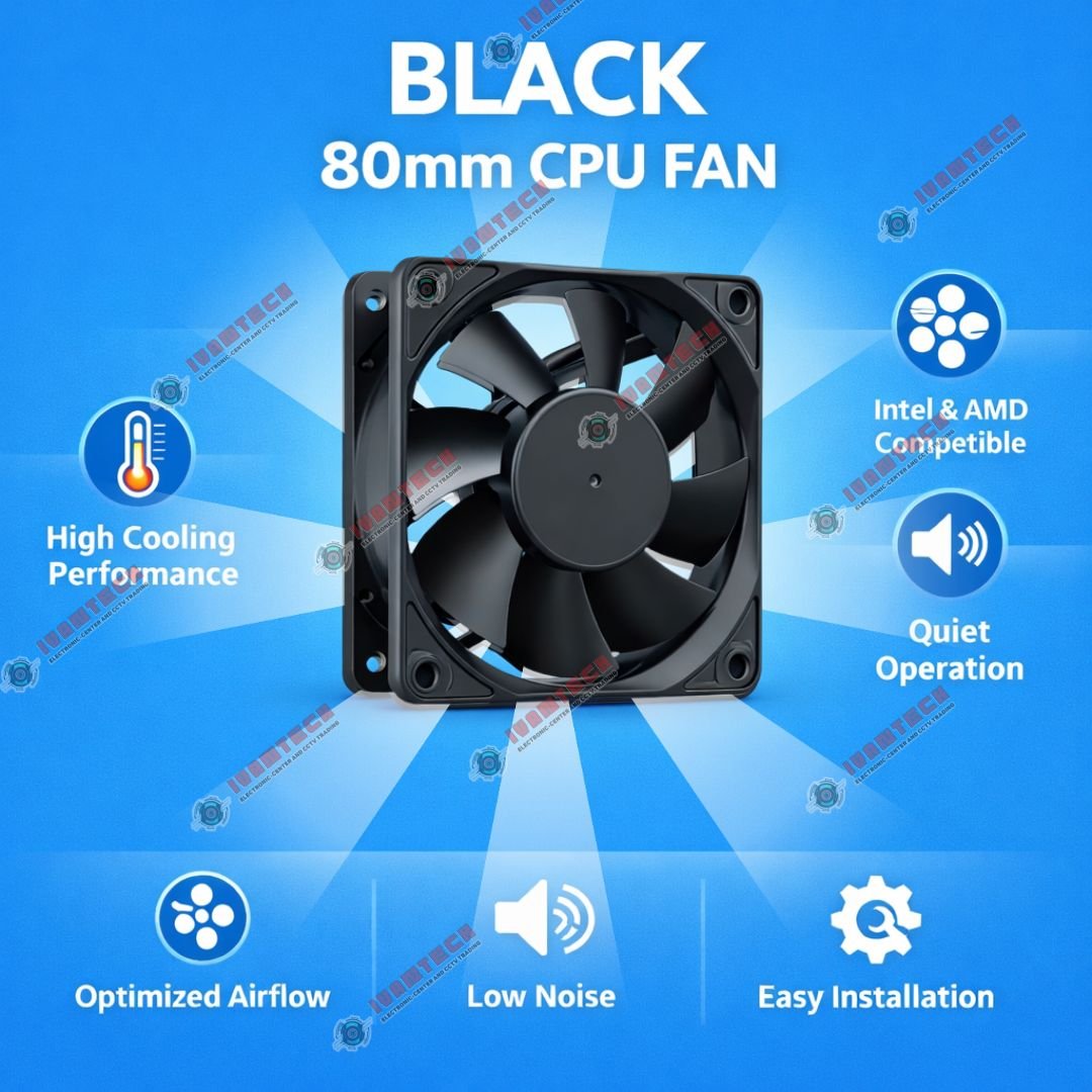 Keep your CPU running cool and stable with the BLACK 80mm CPU FAN. Designed for optimal airflow and low noise, this fan ensures your system stays reliable even during intense computing or gaming sessions. Its sleek black design complements any PC build while providing consistent performance. Perfect for desktops, small form-factor PCs, and custom builds.