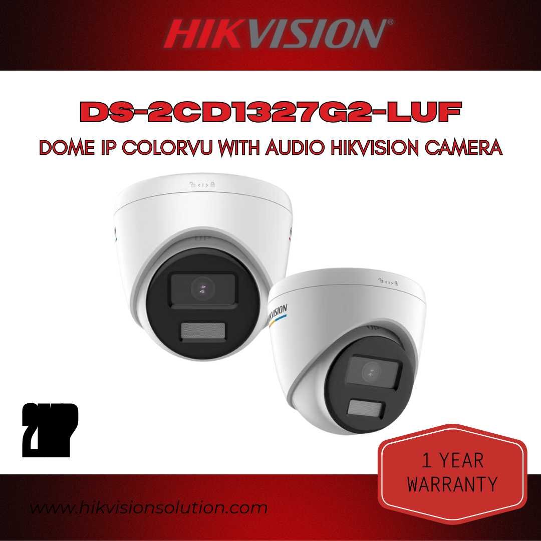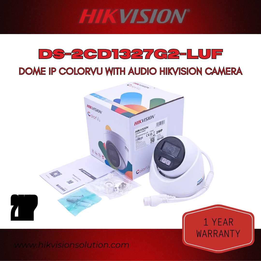 The Hikvision DS-2CD1327G2-LUF 2MP Dome IP Camera is designed to deliver crystal-clear, full-color surveillance 24/7. Powered by ColorVu Technology, it ensures vivid images even in low-light conditions, making it ideal for both day and night monitoring. With a built-in microphone, you can capture not just video but also clear audio for enhanced security.