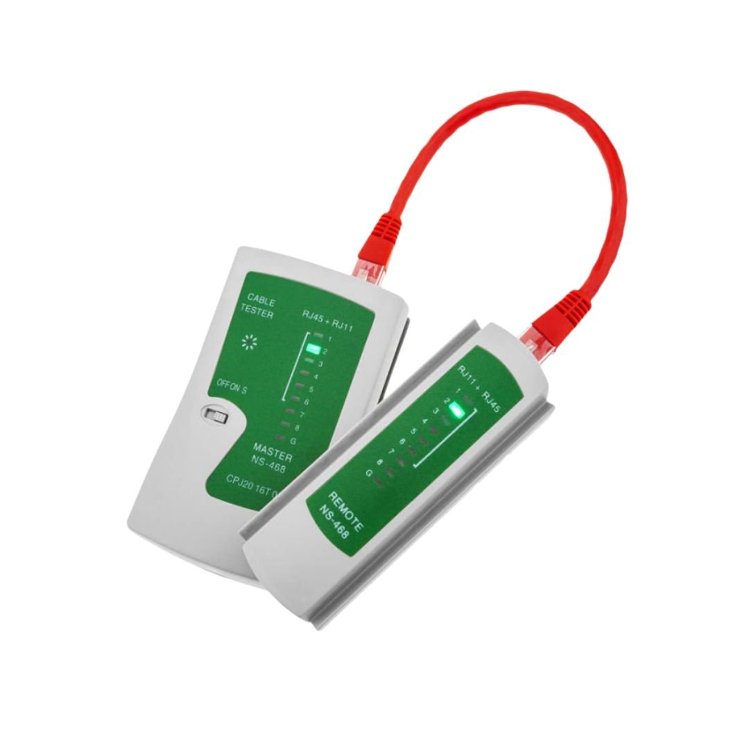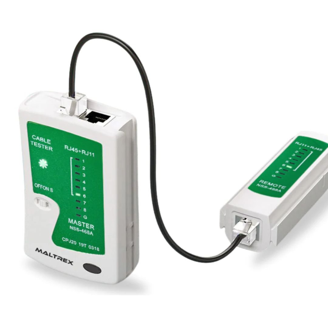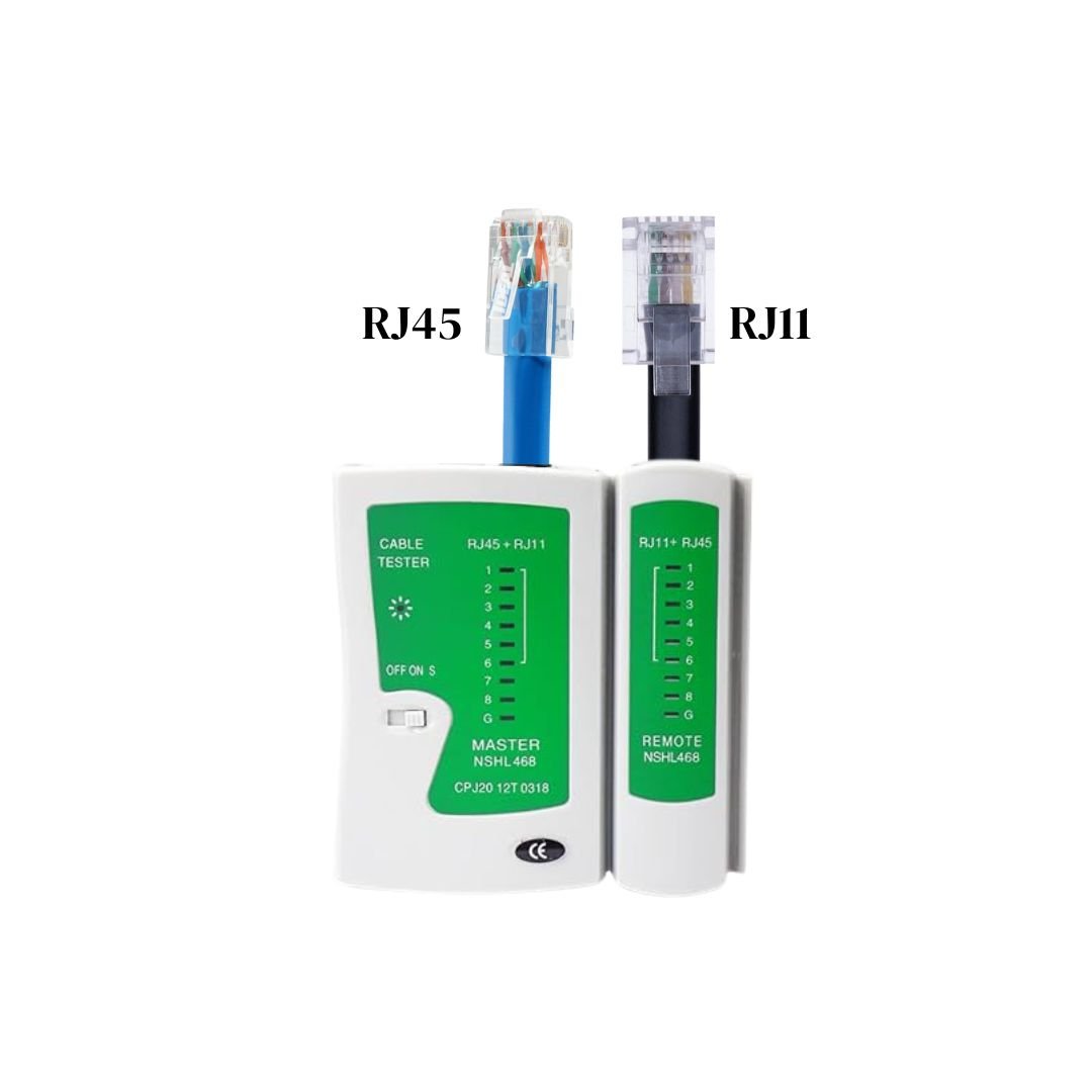 It can test RJ45 network cables like CAT5, CAT5e, and CAT6. It also supports RJ11 and RJ12 telephone lines.